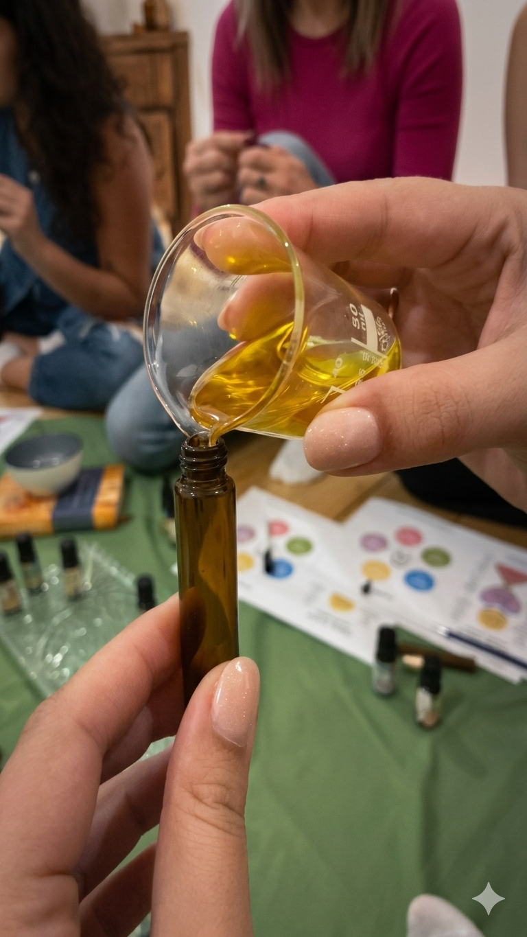Čo ťa čaká: Prejdeme si základy práce s vôňami a bezpečnej aromaterapie. Budeme pracovať s BIO esenciálnymi olejmi VONIAVA a organickými rastlinnými olejmi — suroviny, za ktorých pôvod a kvalitu ručíme. Každý účastník si odnesie svoj jedinečný parfém v 10 ml sklenenom roll-one.