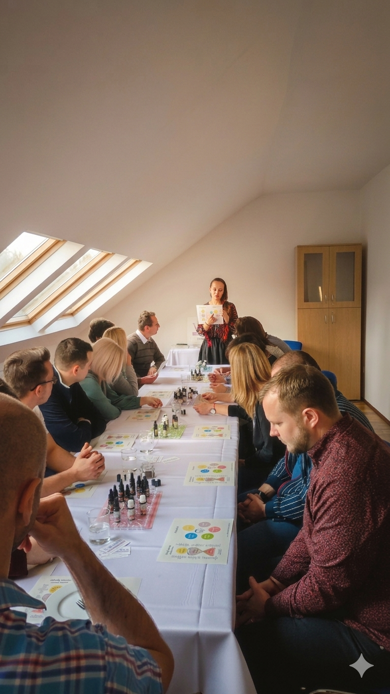 Nemusíš vedieť nič o vôňach. Pracujeme so špeciálne navrhnutými vizuálnymi pomôckami, ktoré ťa celým procesom prevedú. Workshop je otvorený pre všetkých — rovnako pre tých, čo s aromaterapiou začínajú, ako pre tých, čo ju už roky milujú.